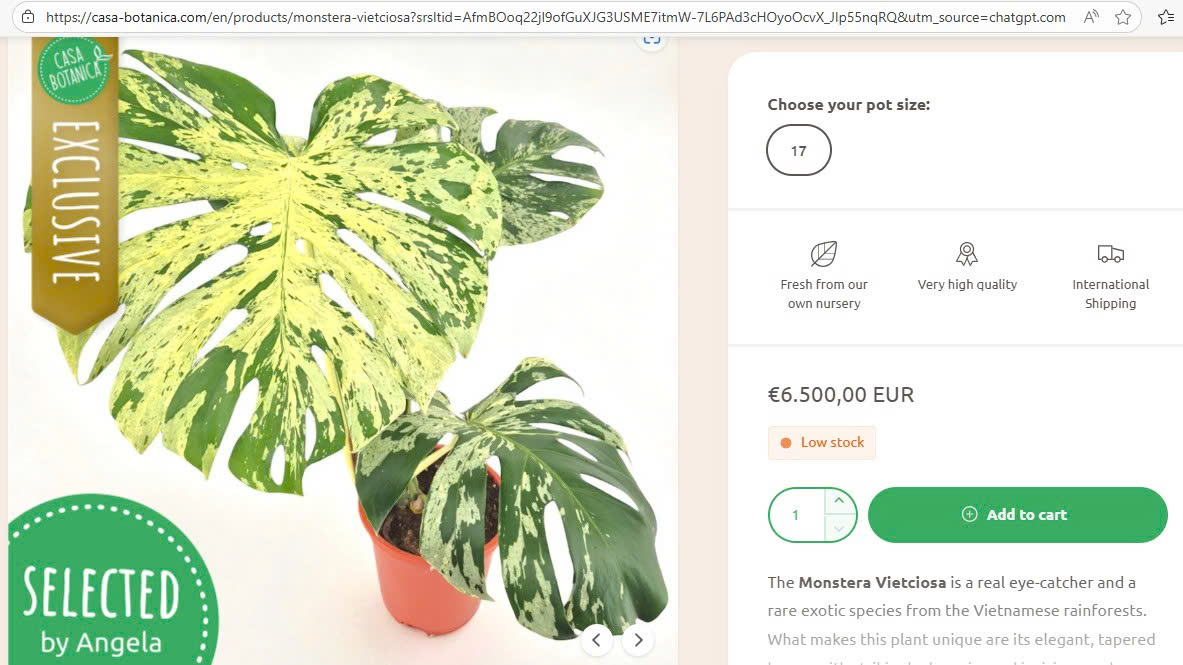 Theo ghi nhận trên thị trường cây cảnh Châu Âu, giá chào bán một cây Monstera Vietciosa hiện dao động khoảng 6.500 Eur/cây (tương đương khoảng 162tr-195tr). Con số này tuy cao nhưng được giới sưu tầm chấp nhận bởi tính hiếm, độ ổn định của variegation, và quan trọng hơn hết là câu chuyện nguồn gốc gắn liền với Việt Nam – yếu tố khiến Vietciosa trở thành một biểu tượng tự hào trong giới chơi kiểng lá.