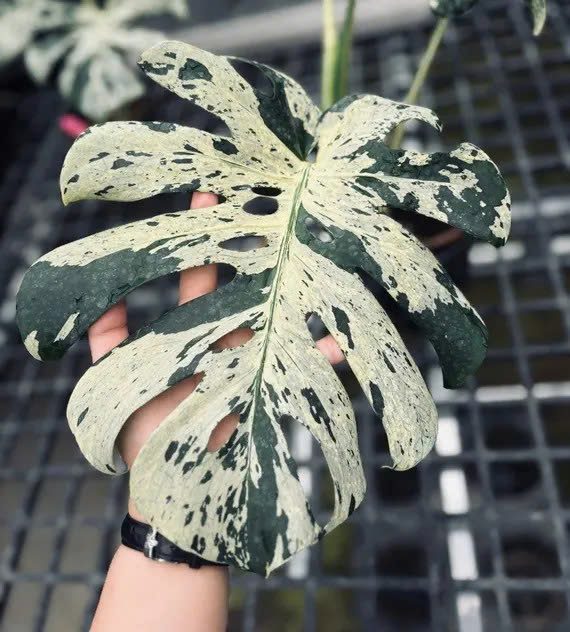 Điểm khiến người chơi mê mẩn ở Vietciosa chính là những mảng variegation trắng kem – vàng kem nổi bật trên nền xanh, kết hợp cùng kiểu lá xẻ sâu đặc trưng của Monstera deliciosa. Lá trưởng thành có thể to bản, dày và cứng cáp, các mảng trắng thường ổn định hơn so với nhiều loại variegated khác.